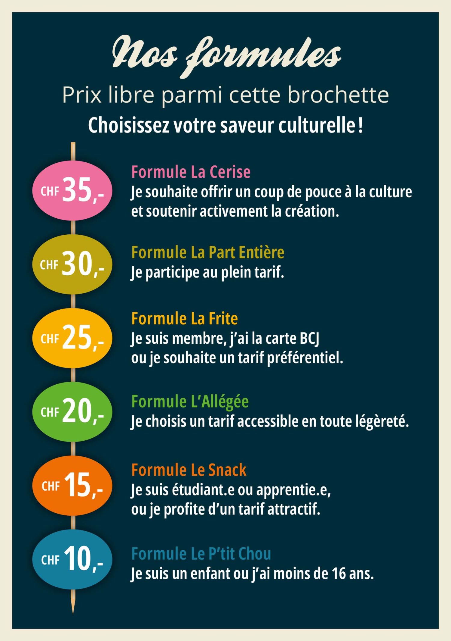 Pour chaque spectacle, vous avez le choix entre plusieurs tarifs.